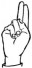 На ћирилици написано СИЛВИЈА ЈУРЧЕВИЋ састоји се из 15 слова [?]. Исписано ћириличном једноручном азбуком за глувонеме: